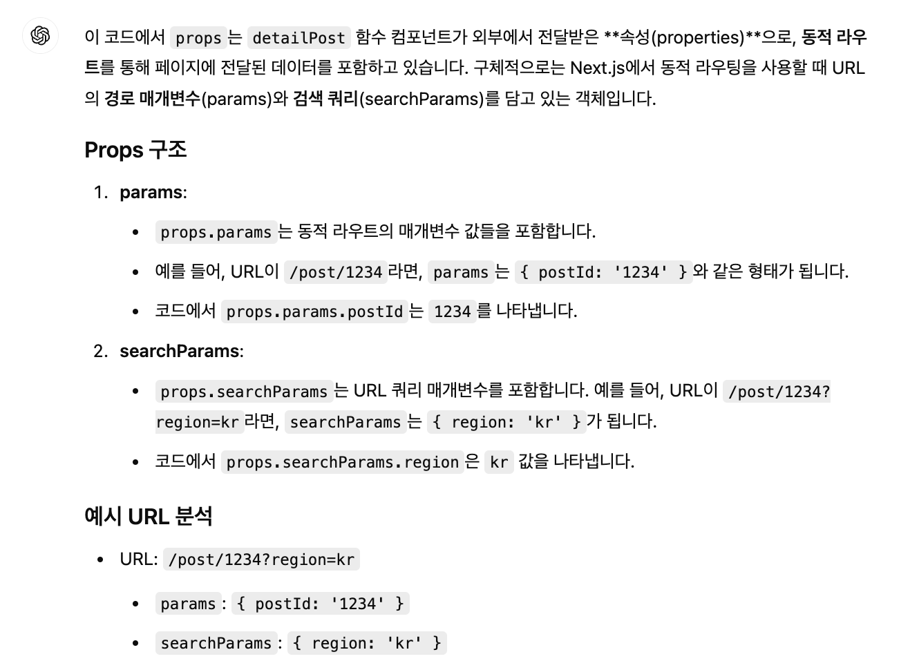 detailPost, postId : {props.params.postId}, searchParams :{' '}