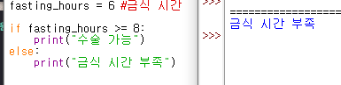 8시간 이상 금식했으면 "수술 가능", 그렇지 않으면 "금식 시간 부족" 출력