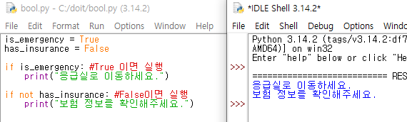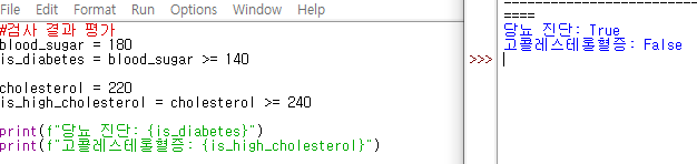 참(True) 또는 거짓(False) 두 가지 값만 가진다.
