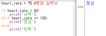 60 미만: "서맥", 60-100: "정상", 100 초과: "빈맥"
