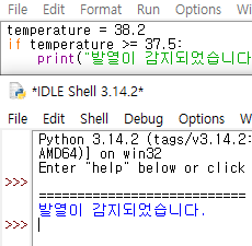 37.5도 이상이면 "발열이 감지되었습니다" 출력