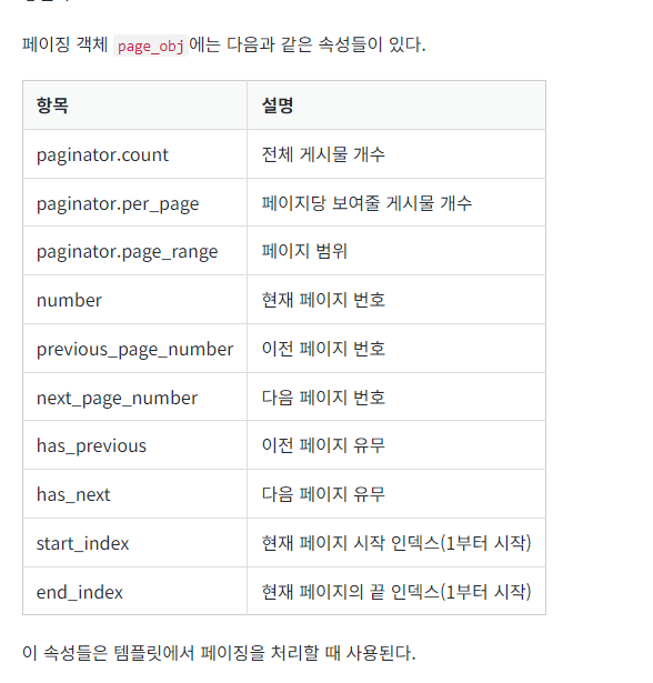 paginator = Paginator(post_list, 10) # 페이지당 10개씩 보여주기
