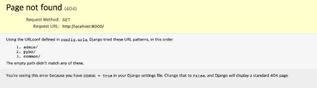 앱에 어떤 기능도 구현하지 않았으므로 urlpatterns는 빈 상태로 놔두자.
