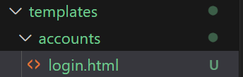 하지만 로그인은 accounts 앱에 구현할 것이므로 오류 메시지에 표시한 것처럼 registration 디렉터리에 템플릿 파일을 생성하기보다는 accounts 디렉터리에 템플릿을 생성하는 것이 좋다. 이를 위해 LoginView가 accounts 디렉터리의 템플릿을 참조할 수 있도록 accounts/urls.py 파일을 다음과 같이 수정하자.
