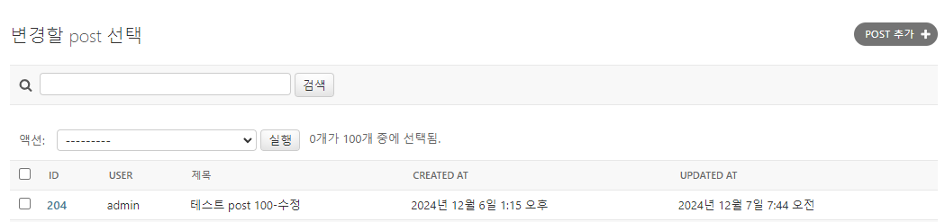 admin 으로 들어 간후 아래와 같이 아무거나 수정후 updated_at 시간확인