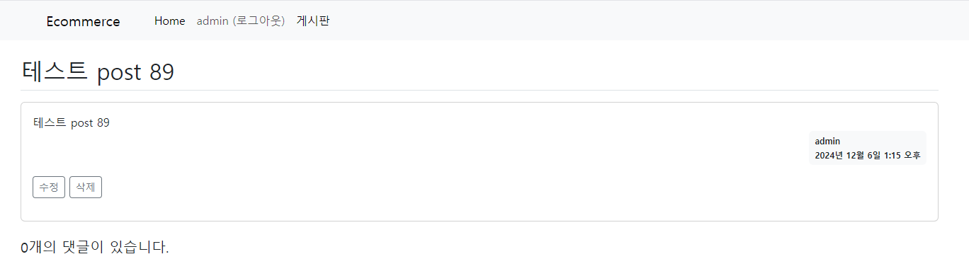 게시글을 작성한 사용자와 로그인한 사용자가 동일할 경우 다음처럼 상세조회 화면에 "삭제" 버튼이 노출될 것이다.