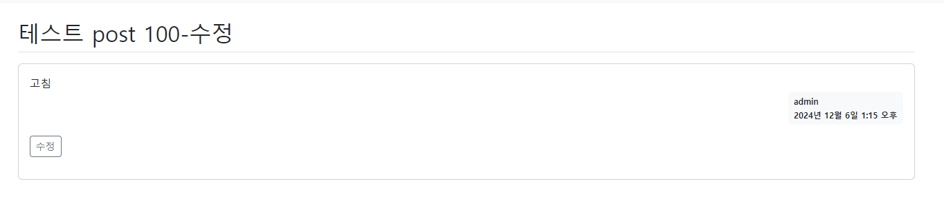 제 로그인 사용자와 글쓴이가 같으면 게시글 상세 화면에 <수정> 버튼이 보일 것이다.