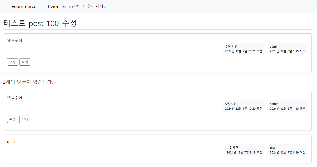 댓글 목록이 출력되는 부분에 답변 수정 버튼을 추가