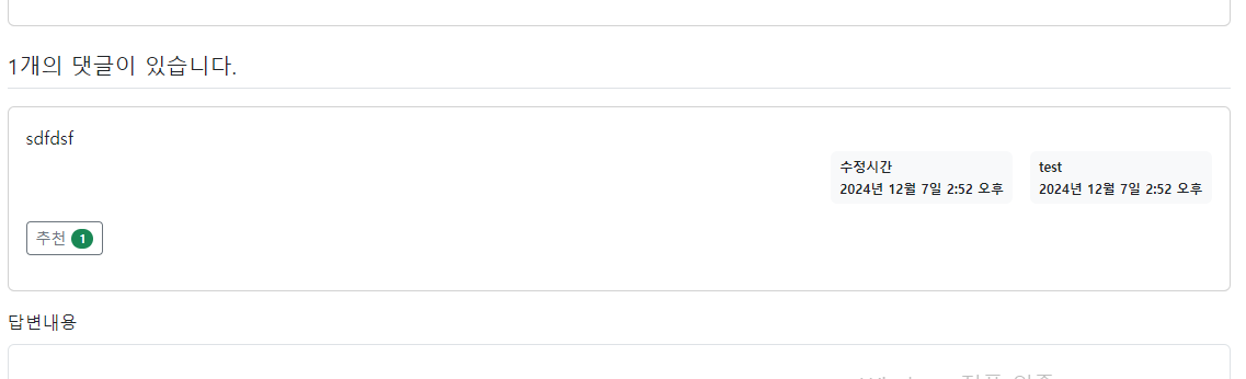 댓글 추천 기능은 게시글 추천 기능과 동일하므로 빠르게 작성해 보자.