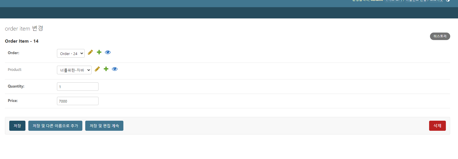 admin 으로 접속후 Order items 와 orders 컬럼 확인