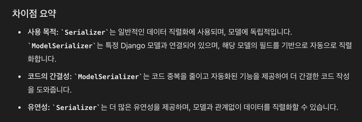 Serializer & ModelSerializer과의 차이점