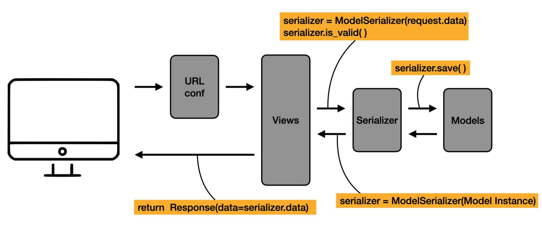 ✔️ Serializer와 ModelSerializer는 Django의 Form과 ModelForm와 유사하다.