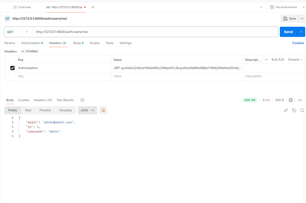 주의 할것은 Value 입력시 위의 access 토큰과 함께 JWT와 한칸을 띄운후 access 토큰을 집어 넣는다.