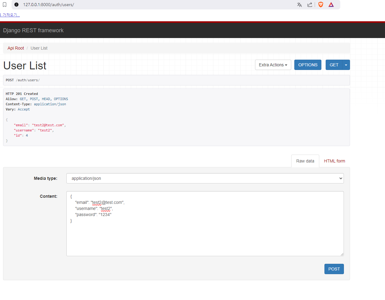 postman 에서 아래와 같이 셋팅후 Send 버튼을 누르후 아래와 같이 유저 정보가 json 으로 넘어 오는가 확인 한다.