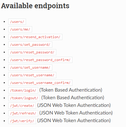 https://djoser.readthedocs.io/en/latest/getting_started.html#available-endpoints