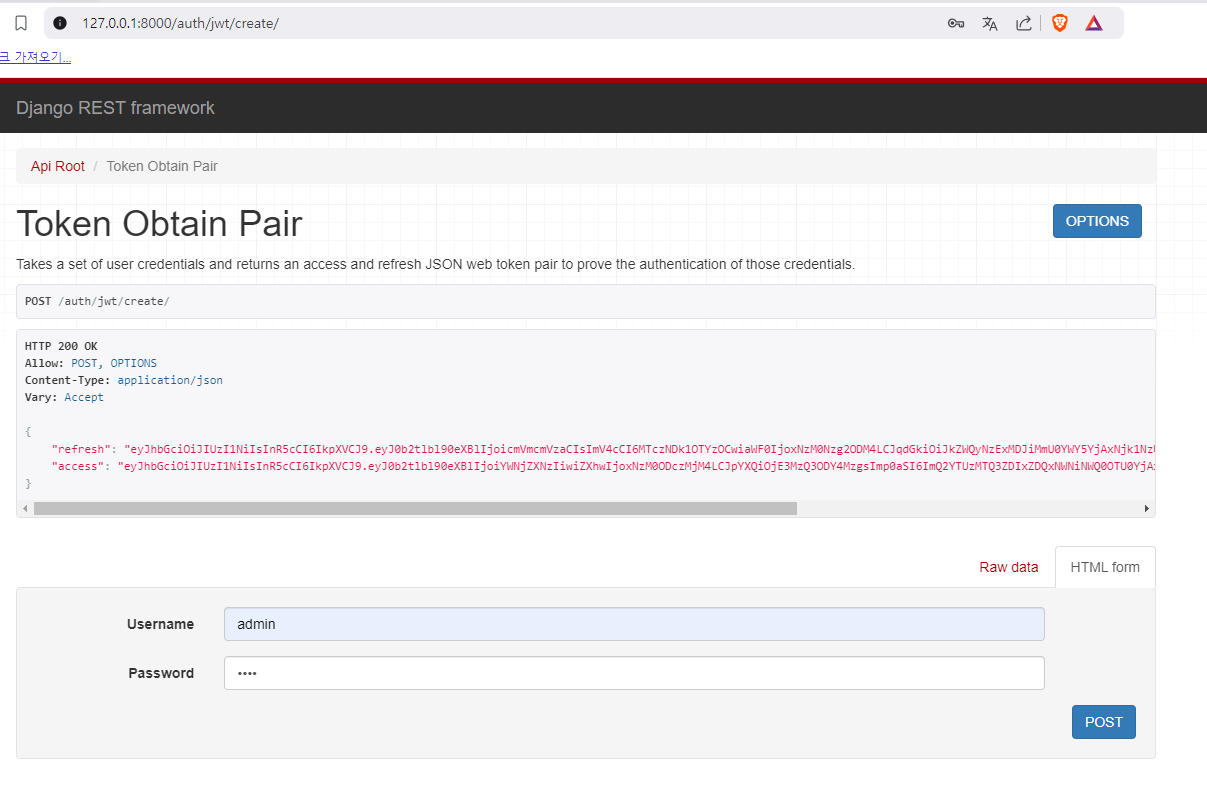 아래와 같이 토큰을 얻기 위하여 로그인을 한다.
