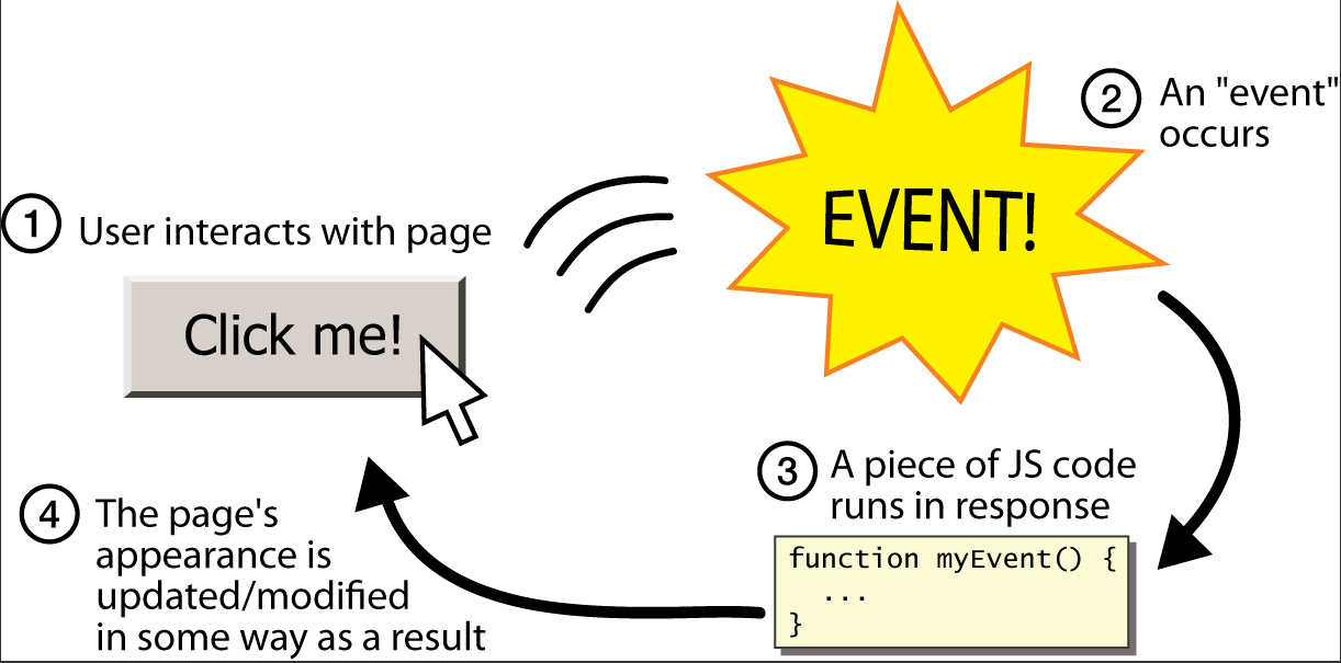 이 이벤트라는게 존재하는 이유는 어떠한 이벤트가 발생했을 때 그에 맞는 반응을 해주기 위해서겠죠~! 따라서 이벤트는 일반적으로 함수에 연결되며, 이 함수를 이벤트 핸들러(Event Handler) 라고 합니다.