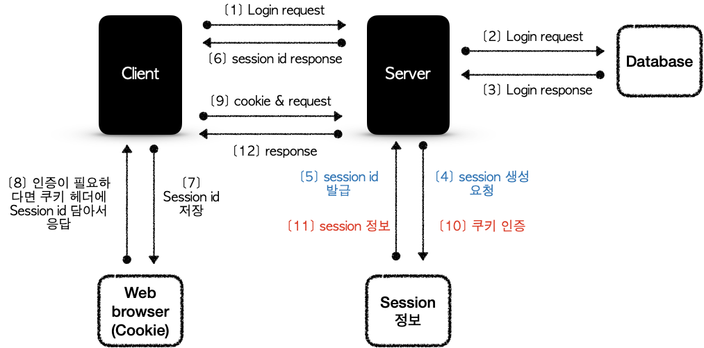 인증을 하기위한 과정에서 처음에 서버는 쿠키를 생성해서 클라이언트에게 보내게된다면, 클라이언트는 쿠키를 웹 브라우저에 저장한다.