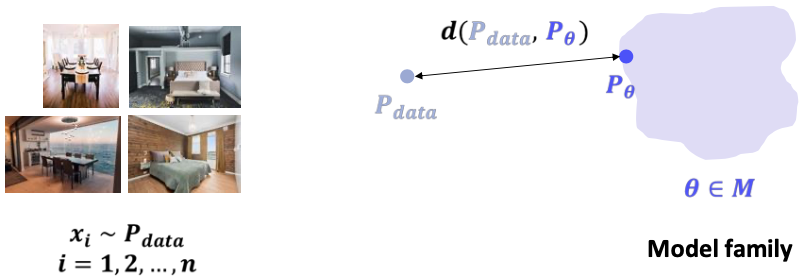 statistical generative model은 크게 1) 데이터, 2) model family, 3) 거리 함수, 4) 최적화 방법론으로 구성된다.