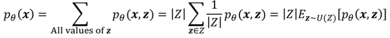 이 방식으로 학습한 모델이 Latent Variable Model(은닉 변수가 있는 모델)이다. 위에서 언급했듯 는 구하기 쉽지 않다. 하지만 여기에 z라는 latent variable을 도입하면 를 더 잘 근사할 수 있다. 보통 X는 multivariate해서 복잡하지만 여기에 우리가 알고 있는 z로 conditional probability 를 계산하면 보다 단순한 분포가 된다. 그래서 여러 변수에 대해 이 conditional probability를 계산하여 합치면 복잡한 도 보다 간단하게 근사할 수 있는 것이다. z를 모를 경우에는 데이터로 학습해서 구할 수 있다.