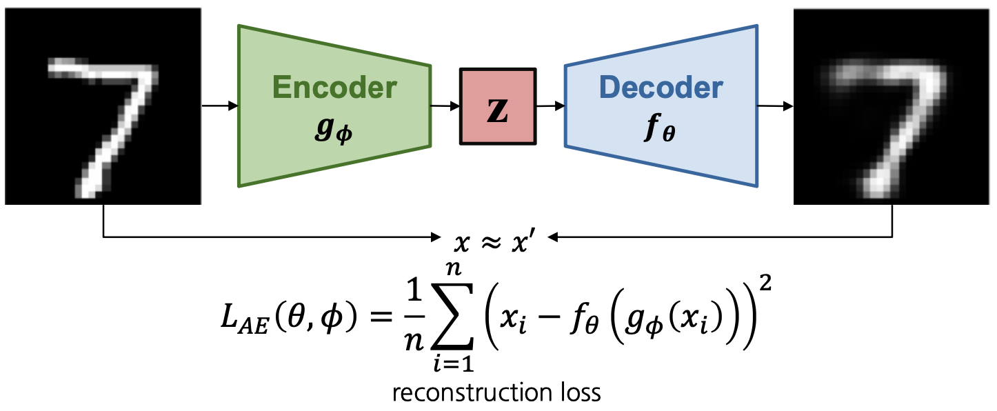 목적 함수는 reconstruction loss인데, 일반적으로 Mean Squared Error 혹은 Mean Absolute Error를 활용한다.