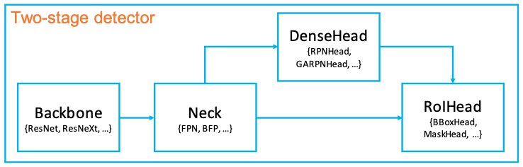 2 stage detctor 모델은 크게 backbone, neck, head로 구성된다.