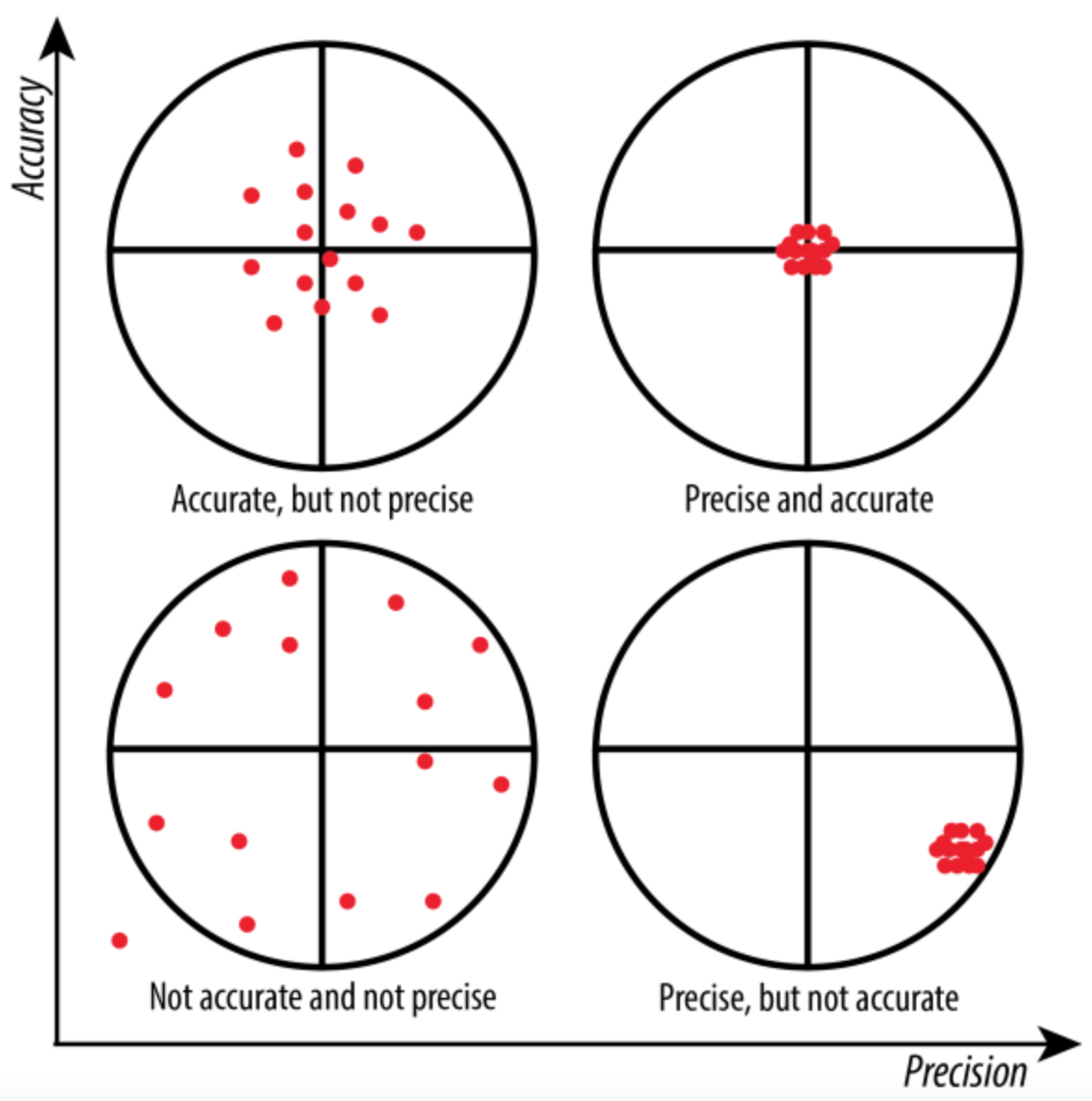 bias-variance tradeoff를 이해하기 위해 먼저 accuracy와 precision의 개념을 짚고 가야 한다.