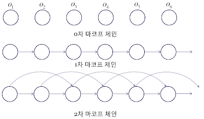 앞의 n개 단어를 보고 다음 단어를 예측하는 것에 n차 마코프 모델이 적용된다.