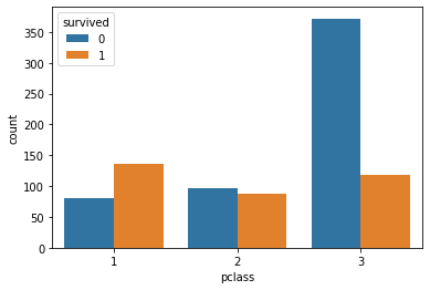 sns.countplot(x='pclass', data=tbl, hue='survived', ax=ax[0])