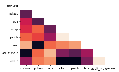heatmap은 대칭적인 모양으로 나타나기 때문에 대각선 부분을 굳이 나타낼 필요는 없다. 대각선 부분을 나타내지 않으려면 마스크를 추가해주면 된다.