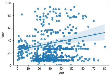 seaborn에서 regplot은 데이터 포인트들의 linear regression model fit (회귀선)을 함께 보여주는 scatter plot이다.