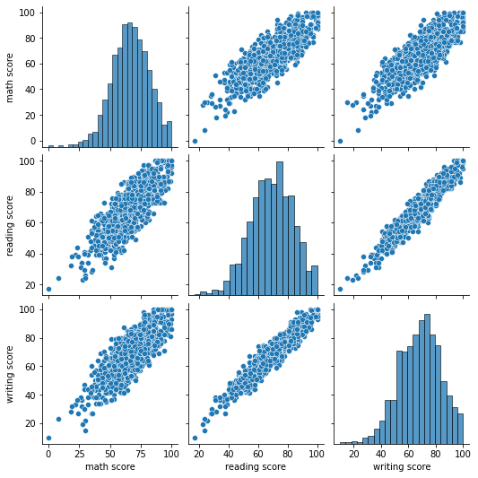 sns.pairplot(data=tbl) # StudentPerformance.csv