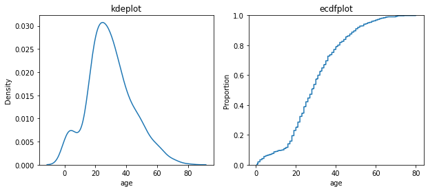 sns.ecdfplot는 누적 확률 밀도로 나타낸 것