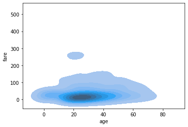 kdeplot을 이용하면 contour map도 그릴 수 있다.