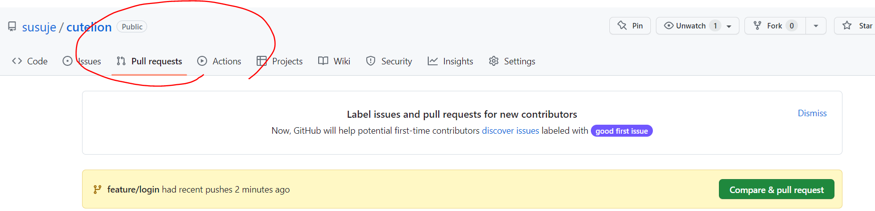 이 브랜치를 깃헙에도 쏘아줍시다.