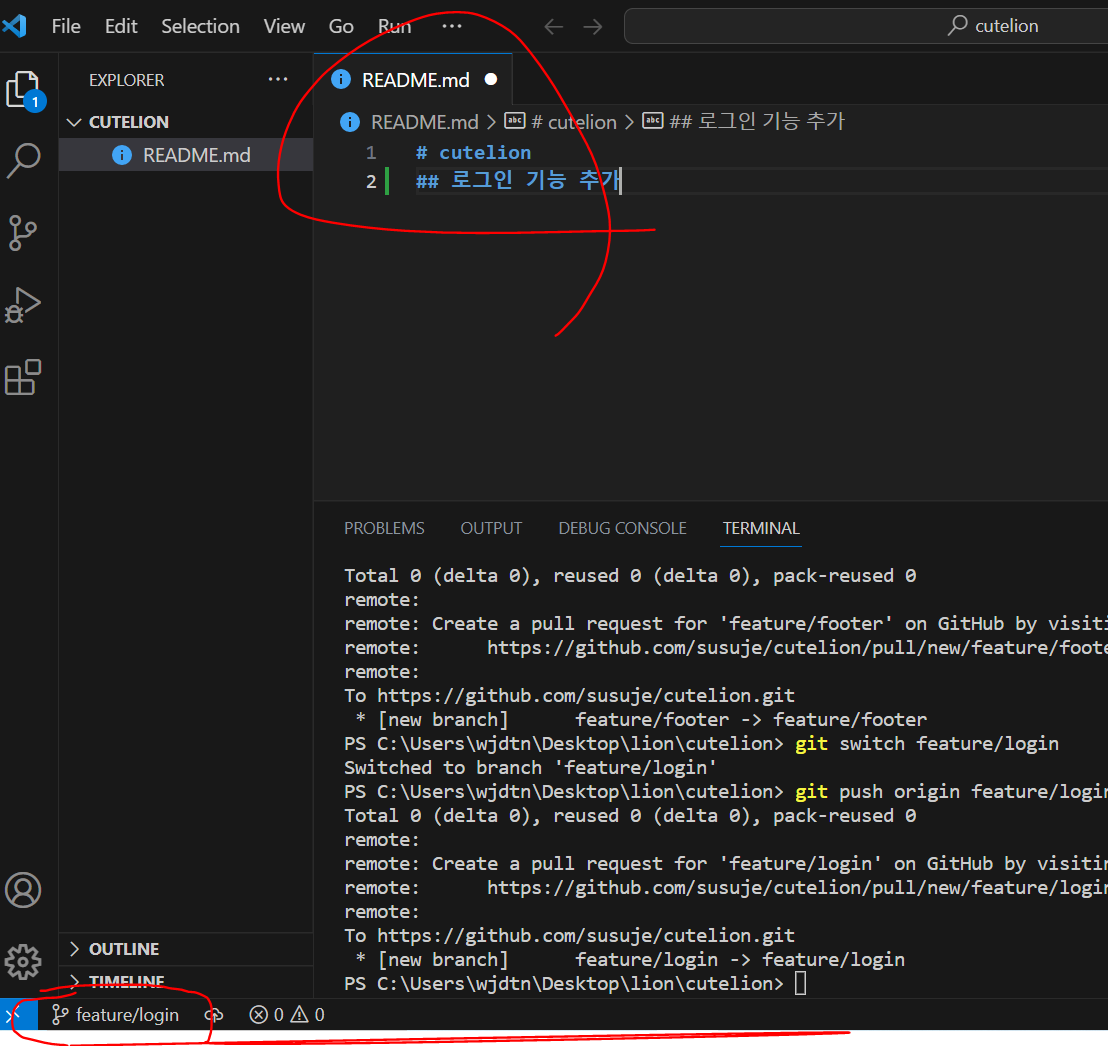 이제 이 브랜치에서 열심히 코드를 만들엇다.