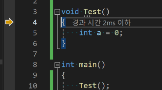 노란색 화살표는 실행 대기 중인 코드를 가리킨다.