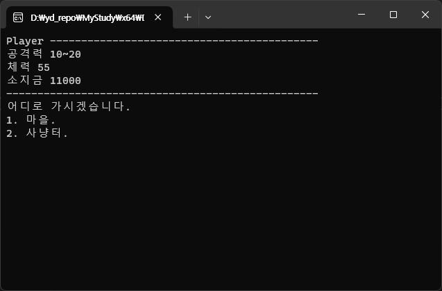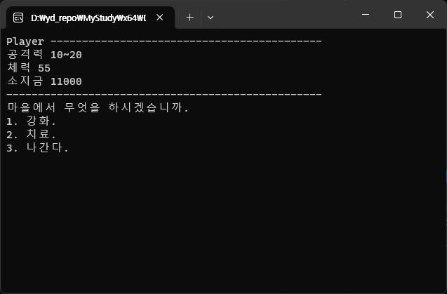 오늘은 어제의 TextRpg에 마을을 만든다. (내 코드가 아니라 선생님 코드에서 이어나감)