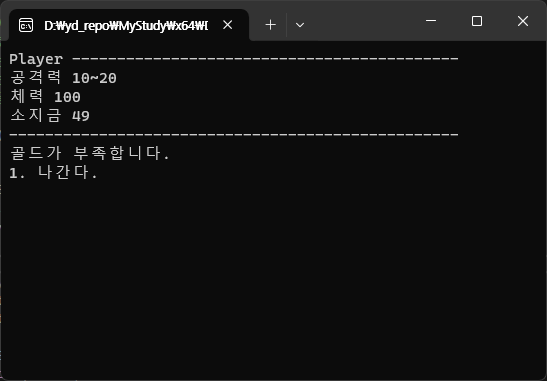 printf_s("골드가 부족합니다.\n");