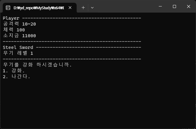 printf_s("무기를 강화 하시겠습니까.\n");