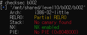 - PIE가 적용되어 있지 않으므로, 코드 영역의 주소는 변하지 않는다.
