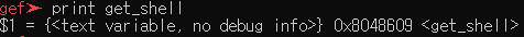 get_shell함수(system("/bin/sh"))가 있다. → 주소 구하기