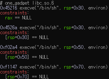 one_gadget 명령어를 이용해 one_gadget의 위치를 찾아보면