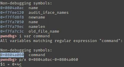 command와 name의 주소 차이를 확인한다.