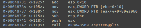 system의 인자로eax×4+0x804a060이 주어진다. (name+4)