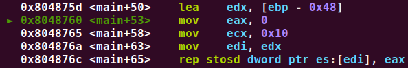stosd-> eax에 담긴 값을 edi에 복사한다 (여기서는 ebp-0x88 지점)