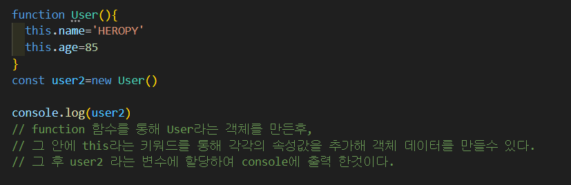 객체 데이터 생성 방법 2. function(함수)