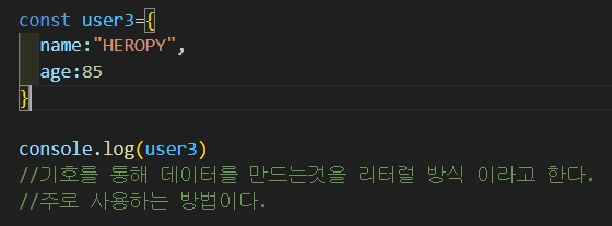 객체 데이터 생성 방법 3. 기호를 통해 만드는 리터럴