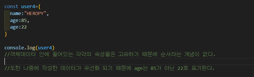 객체 데이터 표기 순서